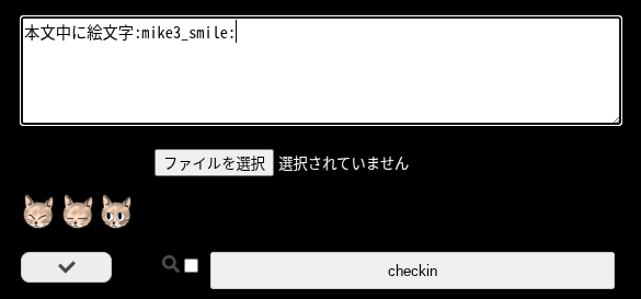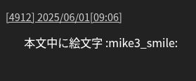 "content": "本文中に絵文字:mike3_smile:",