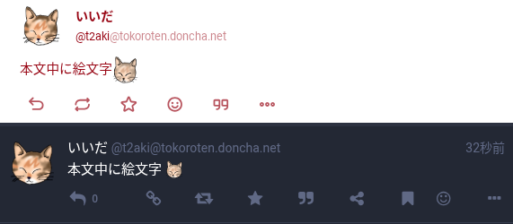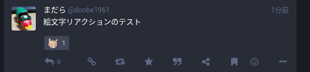 ActivityPubで繋がっているFediverseで「絵文字」と言うと「画像を絵文字として使う」のこと、と言ってもいいぐらいでしょうか。各サーバーで、ユーザーが作成した、いろんな独自画像が絵文字として用意されています。