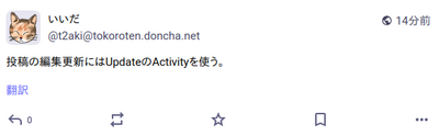 配送(公開)済みの投稿(Note)を編集して配送先サーバーに投げます。
