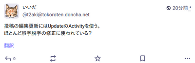自分のサーバーのタイムラインでは投稿は修正されているのに、フォロワーさんのタイムラインでは修正されてない、ということもあります。